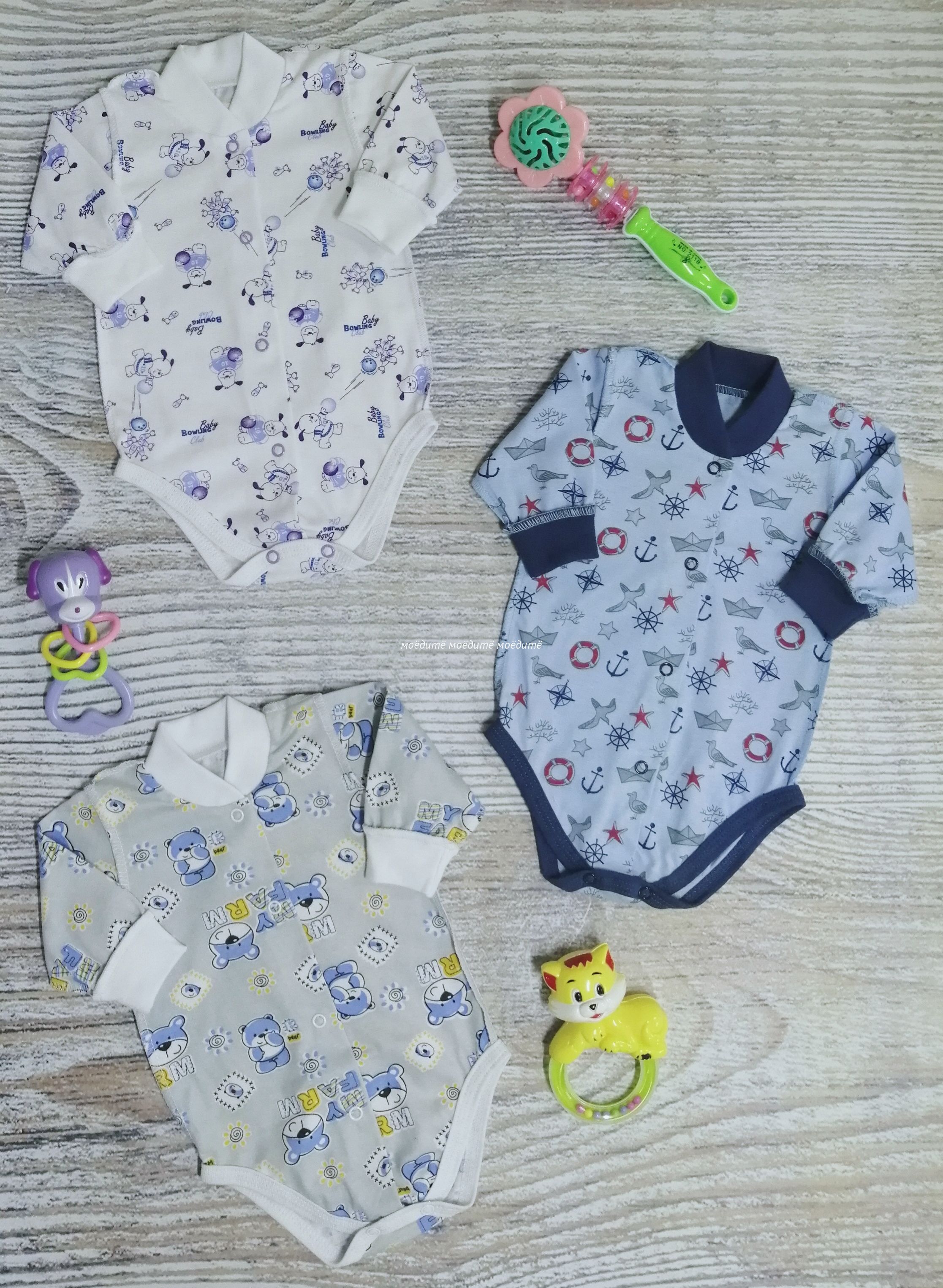 Боди с длинным рукавом, на кнопочках спереди и снизу (под памперс). Рисунки в каждой упаковке и партии могут отличаться.