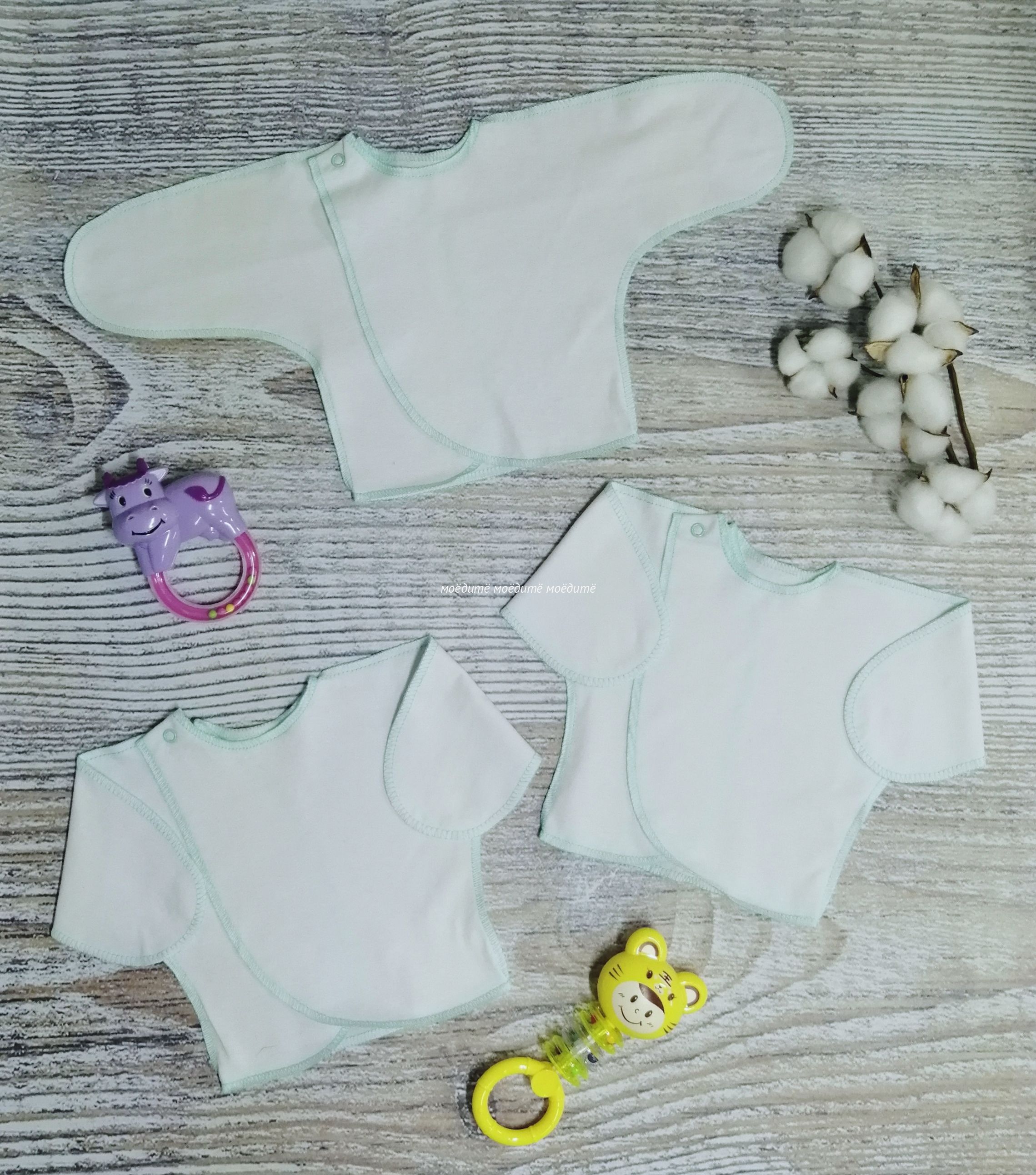 "МоёДитё" распашонка "Нарядная" белая + мята РК003 "Гардения" для новорожденных в Ижевске